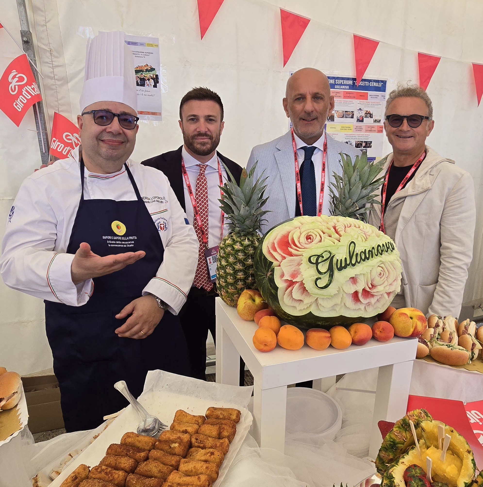 La frutta diventa così un simbolo visivo forte, un gesto di cura verso pubblico e ospiti, e allo stesso tempo un messaggio educativo rivolto ai più giovani, alle famiglie e a chi lavora nella ristorazione e nell’ospitalità.